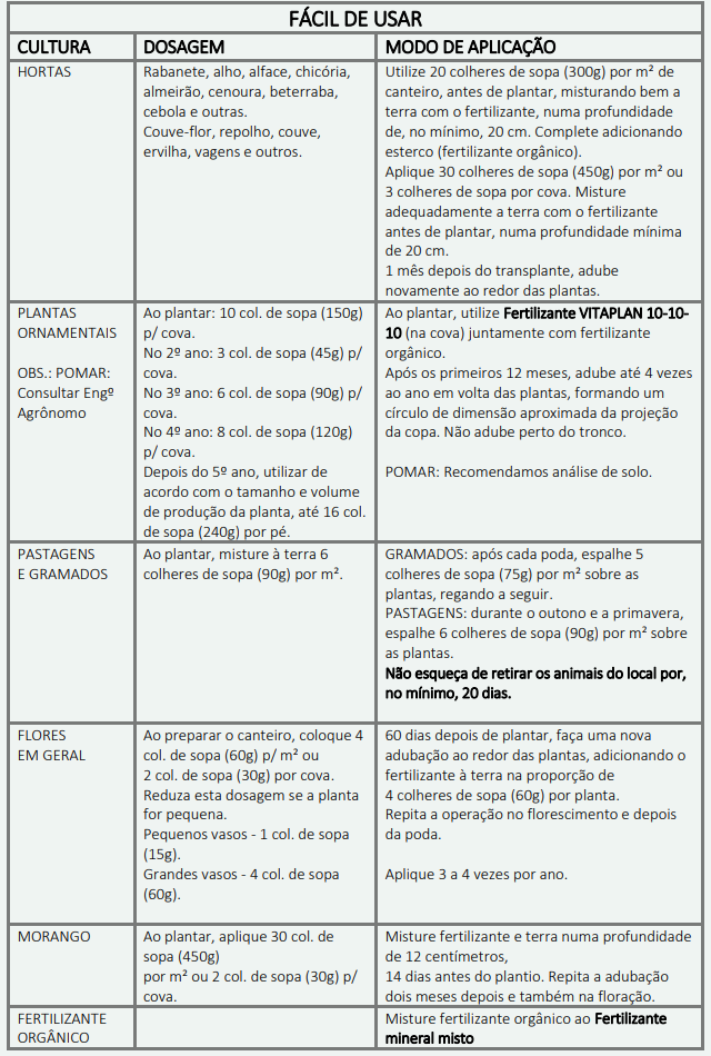 Sua fórmula equilibrada estimula o surgimento de ramos e folhas, é recomendada para quem está começando a se familiarizar com os fertilizantes. Pode ser utilizado em todos os tipos de plantas.