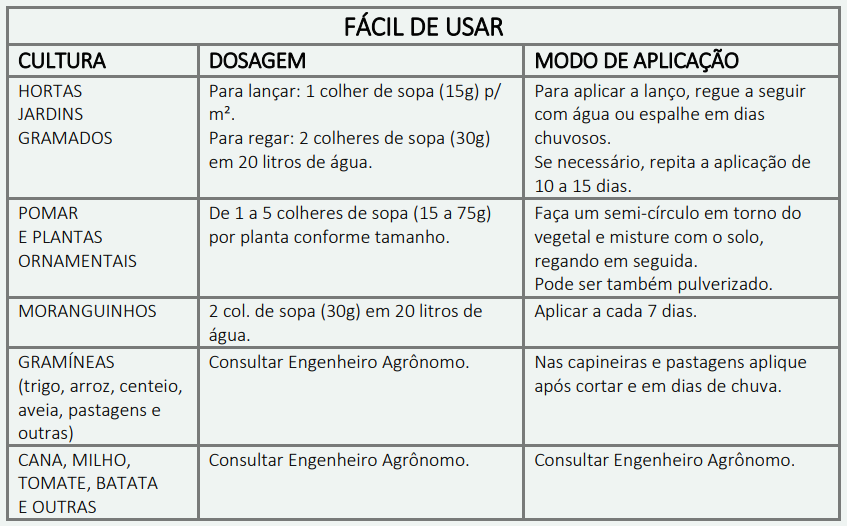 Fertilizante rico em nitrogênio (45%), de ação verdejante, que acelera o processo de